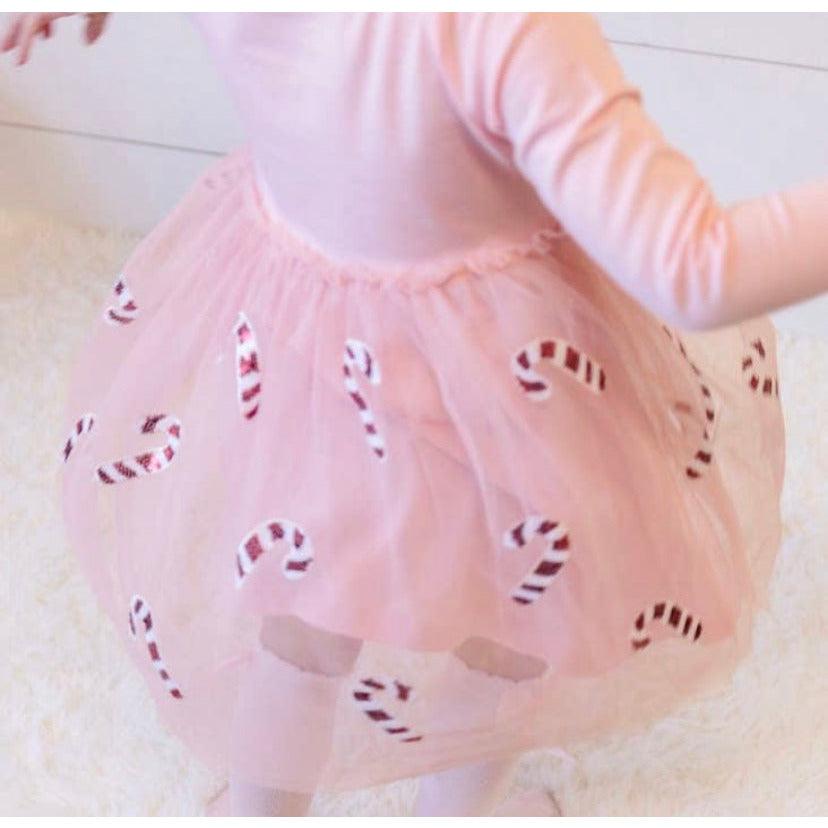 Sweet Wink | Pink Candy Cane Dress | Kid's Holiday Tutu Dress